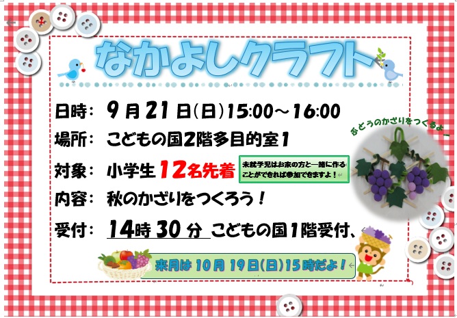 🌈🦄9月21日(日)開催「🧶なかよしクラフト💗」の講座をご紹介します🌈