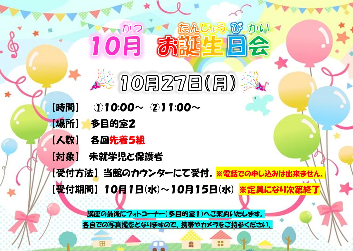 10月27日(月)のお誕生日会の予約を1日から受付開始しています