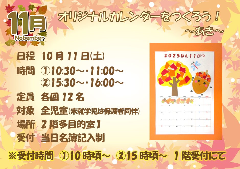 10月11日(土)開催!オリジナルカレンダーをつくろう!