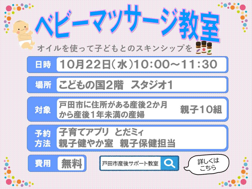 🌈10月22日(水)開催「🤱🏻ベビーマッサージ教室🫙」の講座をご紹介します🌈