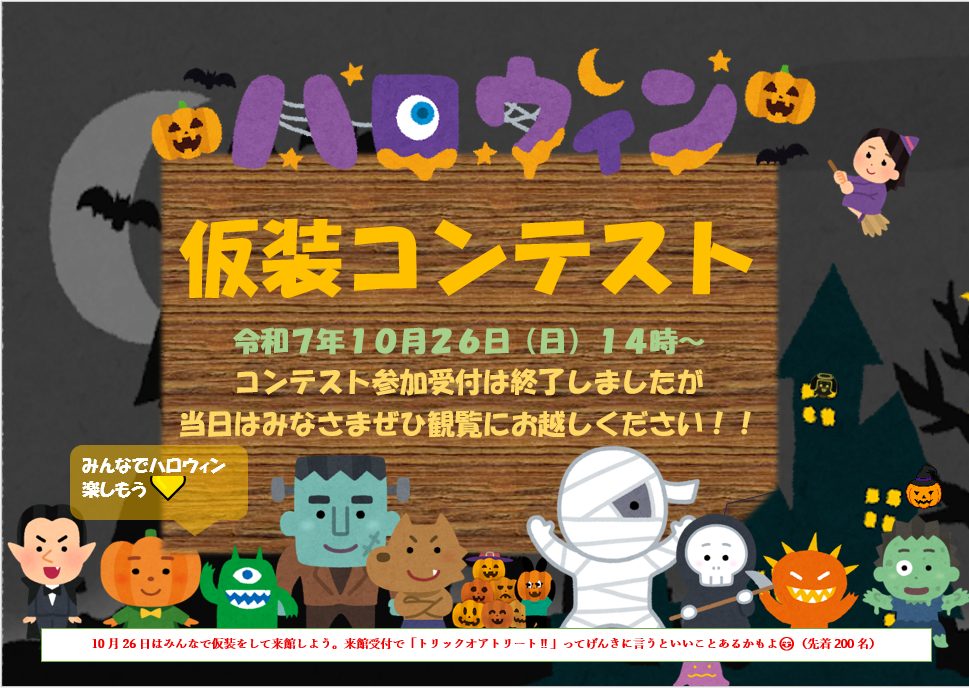 仮装コンテストの参加者募集は、おかげさまで定員に達しましたので受付を終了しました。