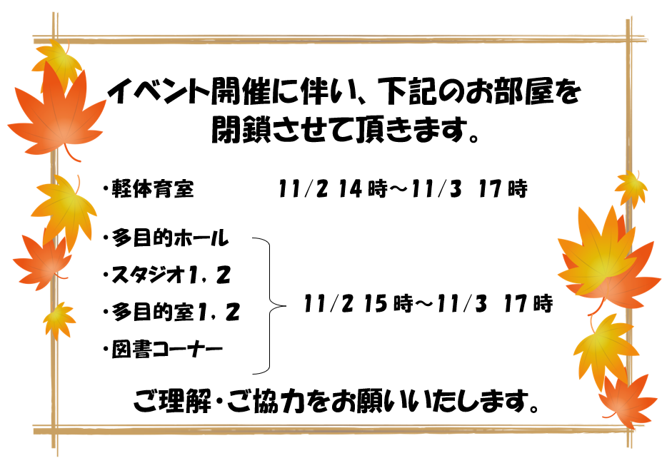 11月2日(日)~3日(月・祝)はイベント開催準備等のため、
