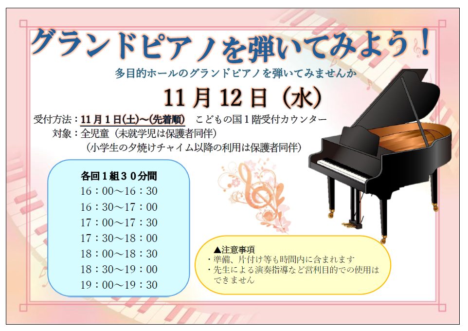 🌈11月12日(水)「グランドピアノ🎹を弾いてみよう❣」🌈