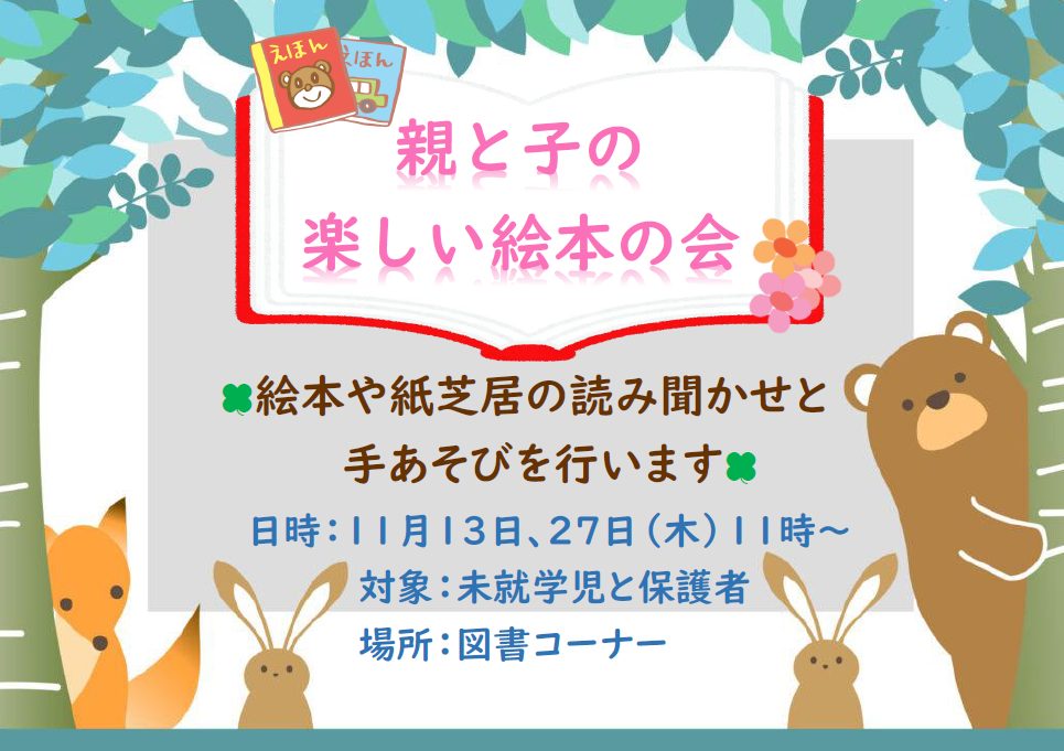 🌈11月13日(木)開催「📖親と子の楽しい絵本の会📖」の講座をご紹介します🌈