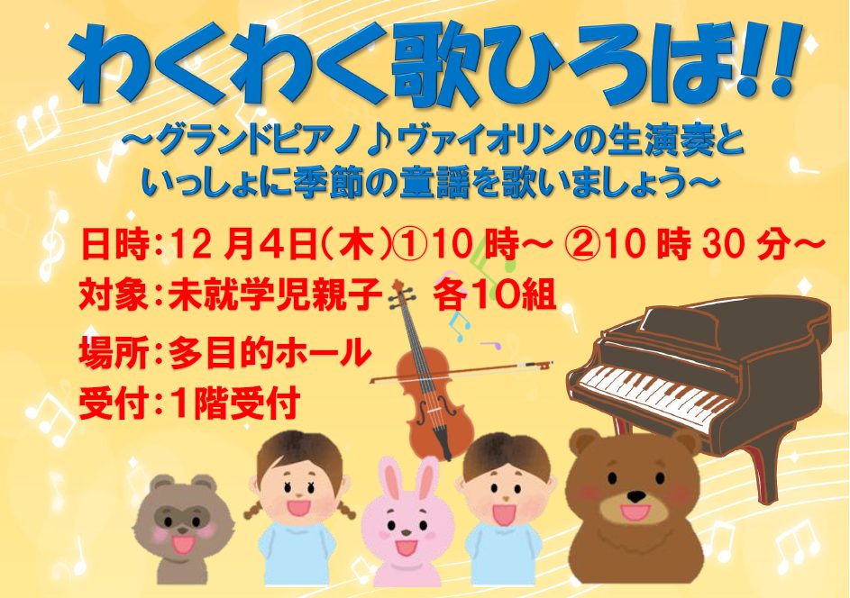 🌈12月4日(木)開催「わくわく♪歌ひろば❣」の講座をご紹介します🌈