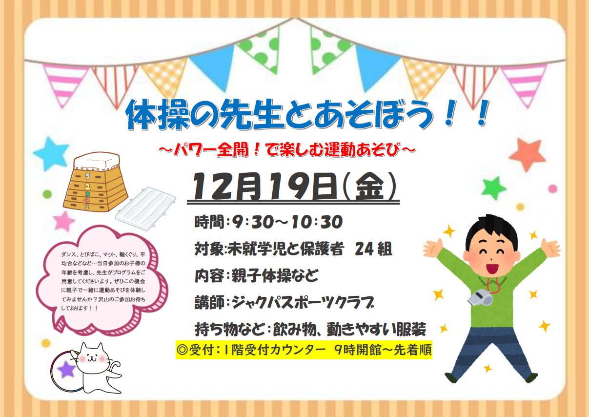🌈12月19日(金)開催「体操の先生とあそぼう🙆🏻♂️‼」の講座をご紹介します🌈