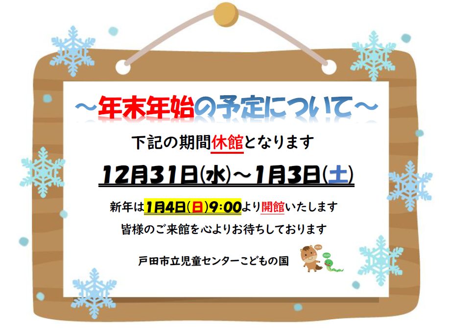 12月31日(水)~1月3日(の期間は年末年始休館とさせていただきます。