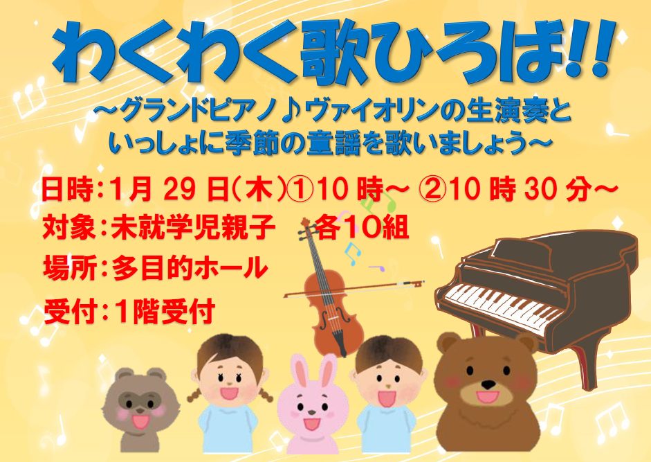 🌈1月29日(木)開催「わくわく♪歌ひろば❣」の講座をご紹介します🌈