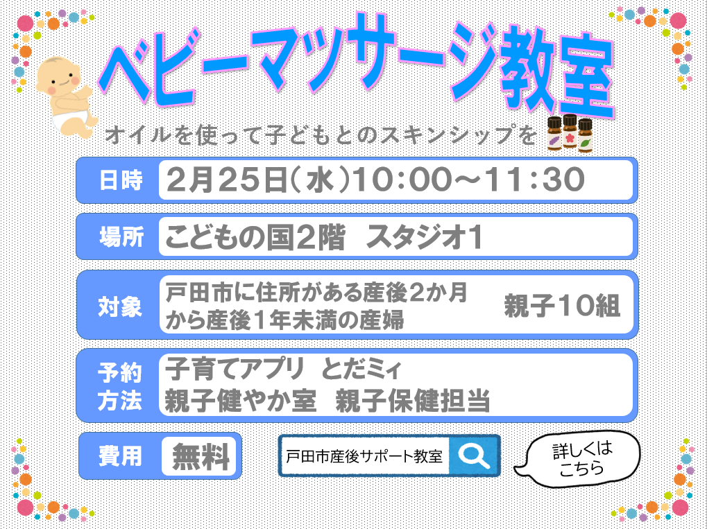 🌈2月25日(水)開催「🤱🏻ベビーマッサージ教室🫙」の講座をご紹介します🌈