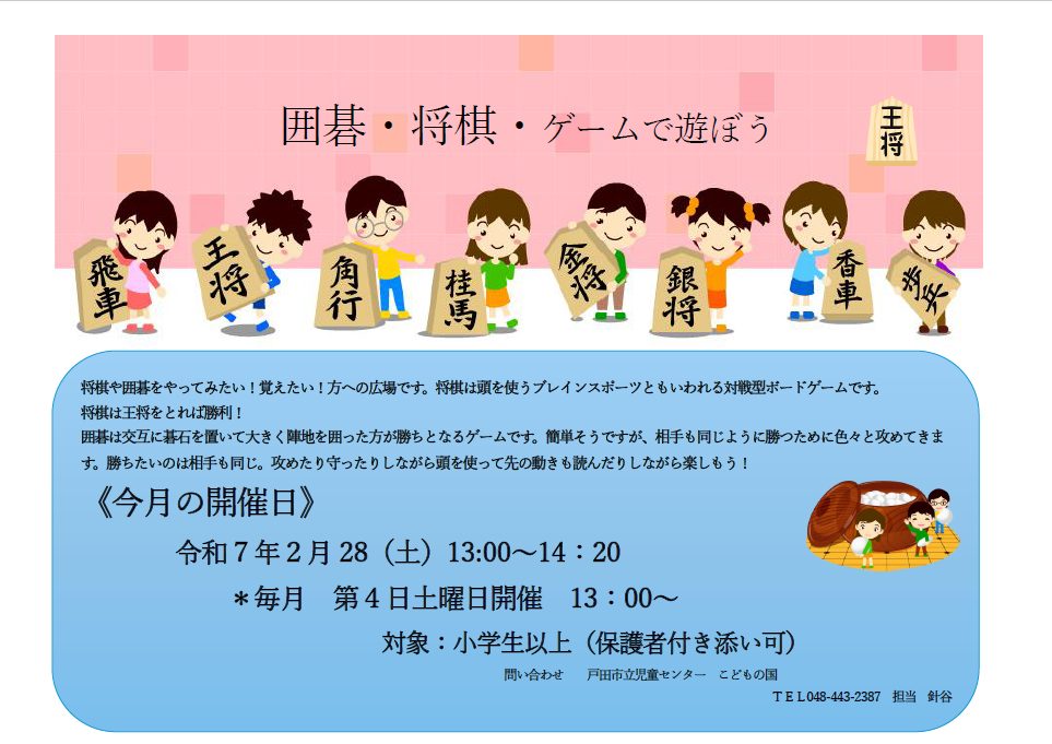 🌈2月28日(土)開催「囲碁・将棋・ゲームであそぼう❣」の講座をご紹介します🌈