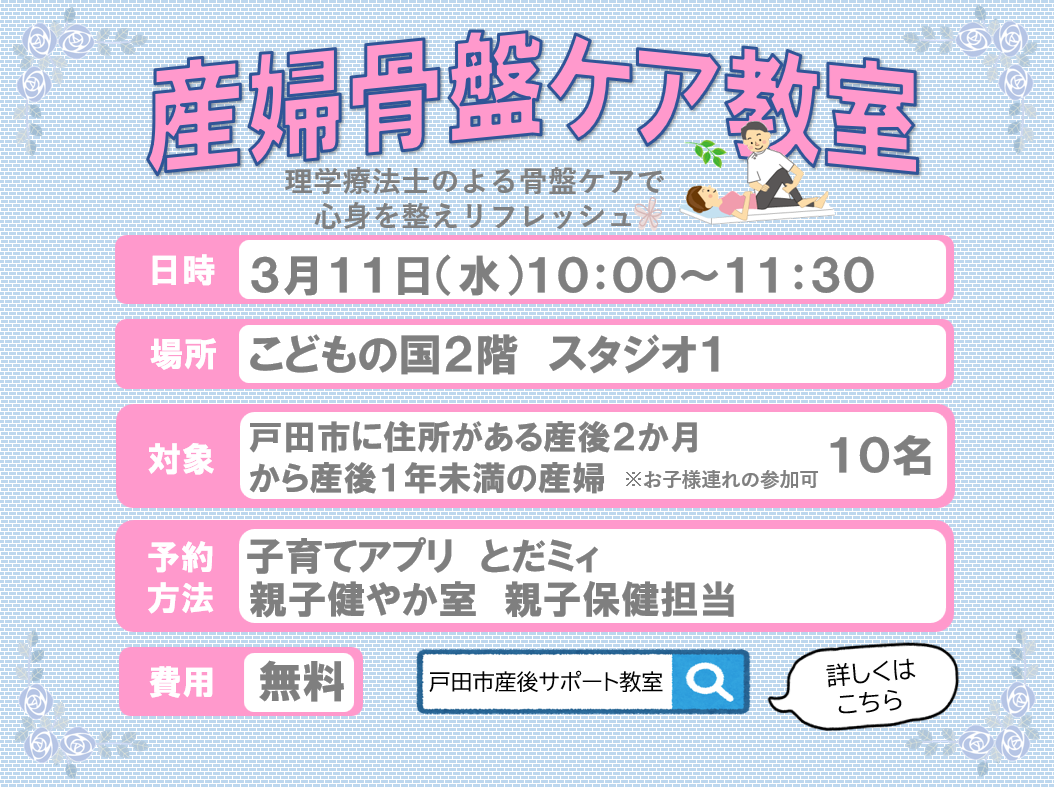 🌈3月4日(水)開催「🤰🏻産後骨盤ケア教室🤱🏻」の講座をご紹介します🌈