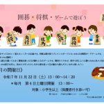 明日、開催予定でした「囲碁・将棋・ゲームであそぼう」の講座は、講師の先生の都合により、中止となりました。